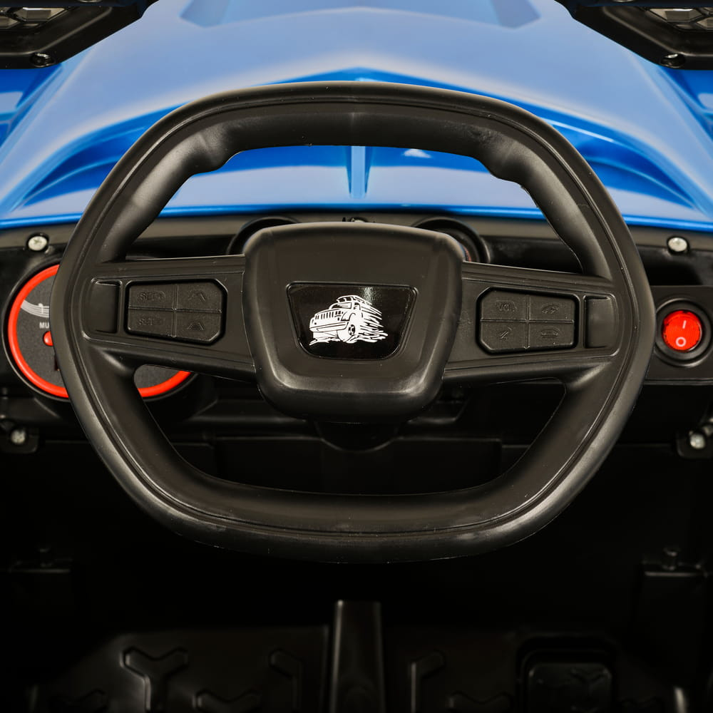 Két motor; Műanyag kerekek; Első, hátsó és felső lámpák; BE / KI kapcsoló; Zenelejátszó USB, MP3, zenei funkciókkal;