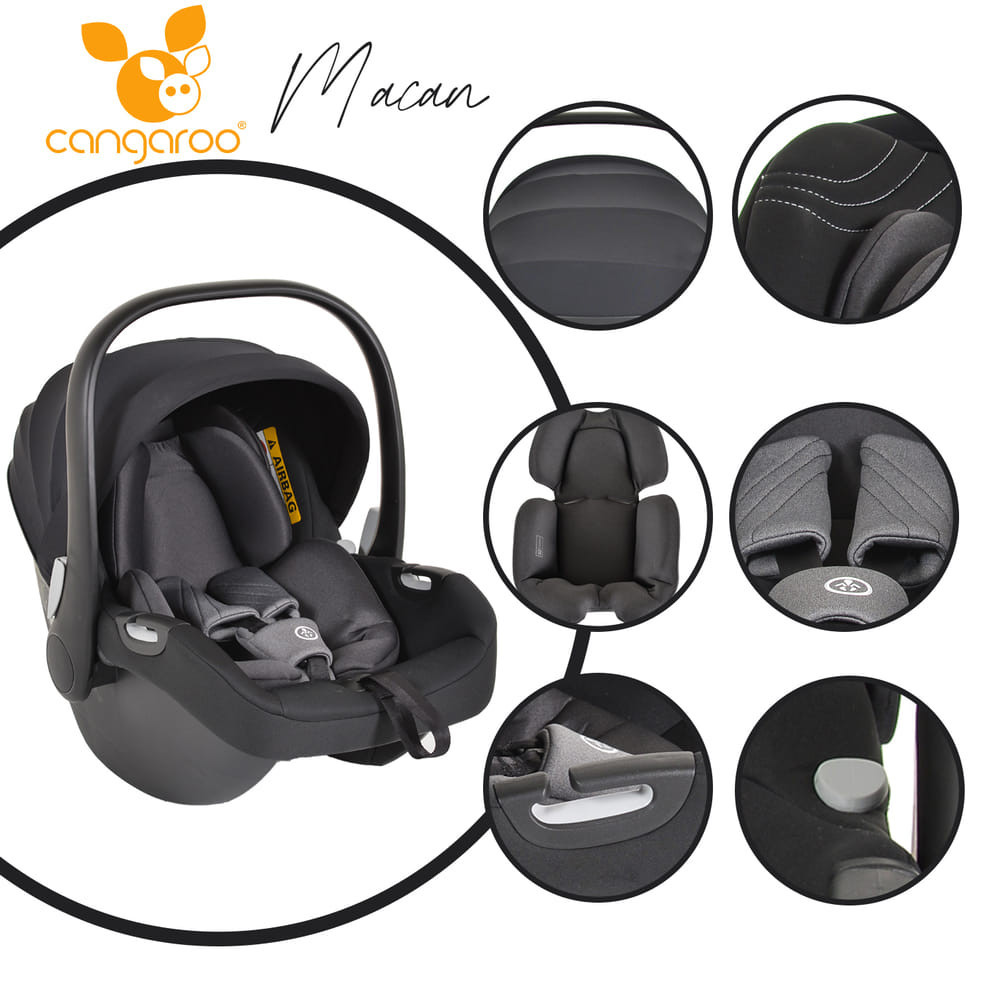 A MACAN hordozó I-SIZE FEKETE egy CANGAROO autósülés,
