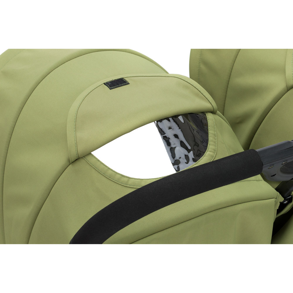 A két napfénytetõn ablak található, amely biztosítja, hogy szemmel tartsa gyermekét. A bolygósítható és rögzíthetõ elsõ kerekeknek köszönhetõen a testvérbabakocsi különösen mozgékony és könnyen manõverezhetõ bármilyen terepen, két gyermekkel is.