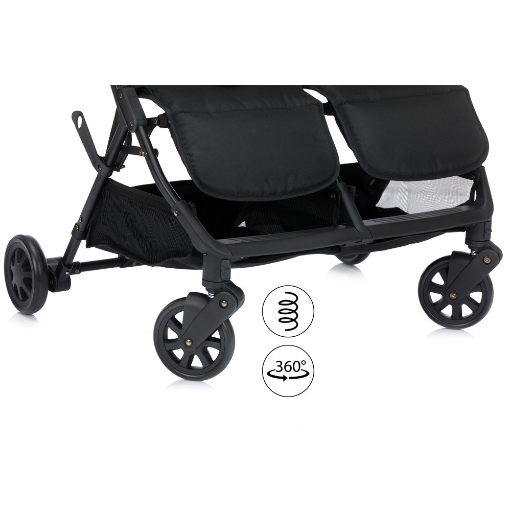 A tökéletes testvér babakocsi a kisgyermekek számára. Szélességének köszönhetõen könnyedén manõverezhetõ. Gyorsan és kompaktan összecsukható szállításhoz.