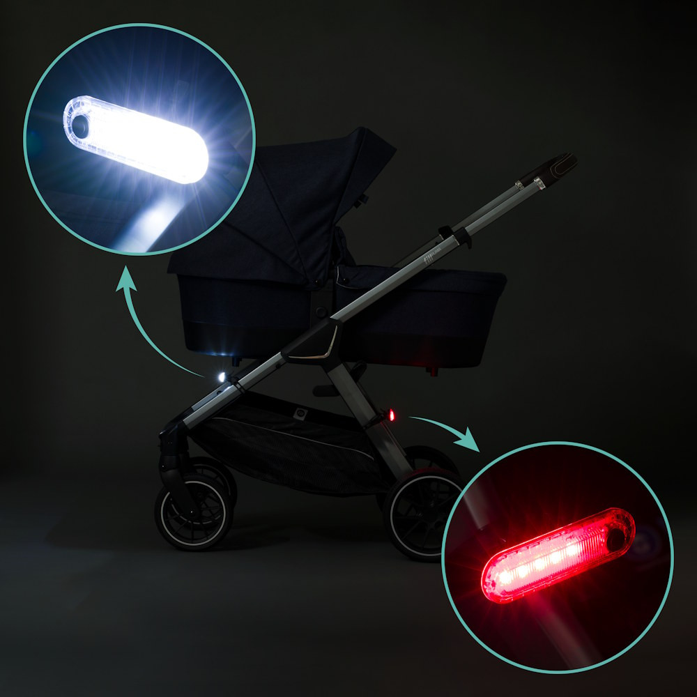 Az Easy Fix biztonsági lámpával a babakocsid a sötétben is jól látható marad. A szett két kompakt LED-lámpát tartalmaz: egy fehér elsõ lámpát az elõre irányuló fényhez, valamint egy piros hátsó lámpát, amely jól láthatóvá tesz a forgalomban.