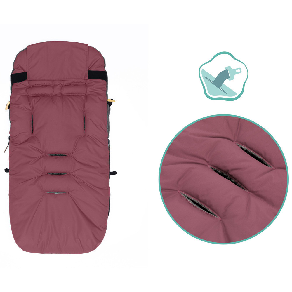 A lábzsák természetesen ülõ és fekvõ helyzetben is használható. Optimális biztonságot nyújtanak az övrések, amelyek lehetõvé teszik, hogy a gyermek be legyen szíjazva a lábzsákkal együtt a babakocsiba. A puha belsõ anyag gondoskodik arról, hogy a baba ne fázzon. A cipzárnak köszönhetõen a felsõ rész teljesen levehetõ, így az alsó rész használható babakocsi betétként, vagy akár pelenkázólapként vagy plédként leteríthetõ a baba alá vendégségben vagy útközben.