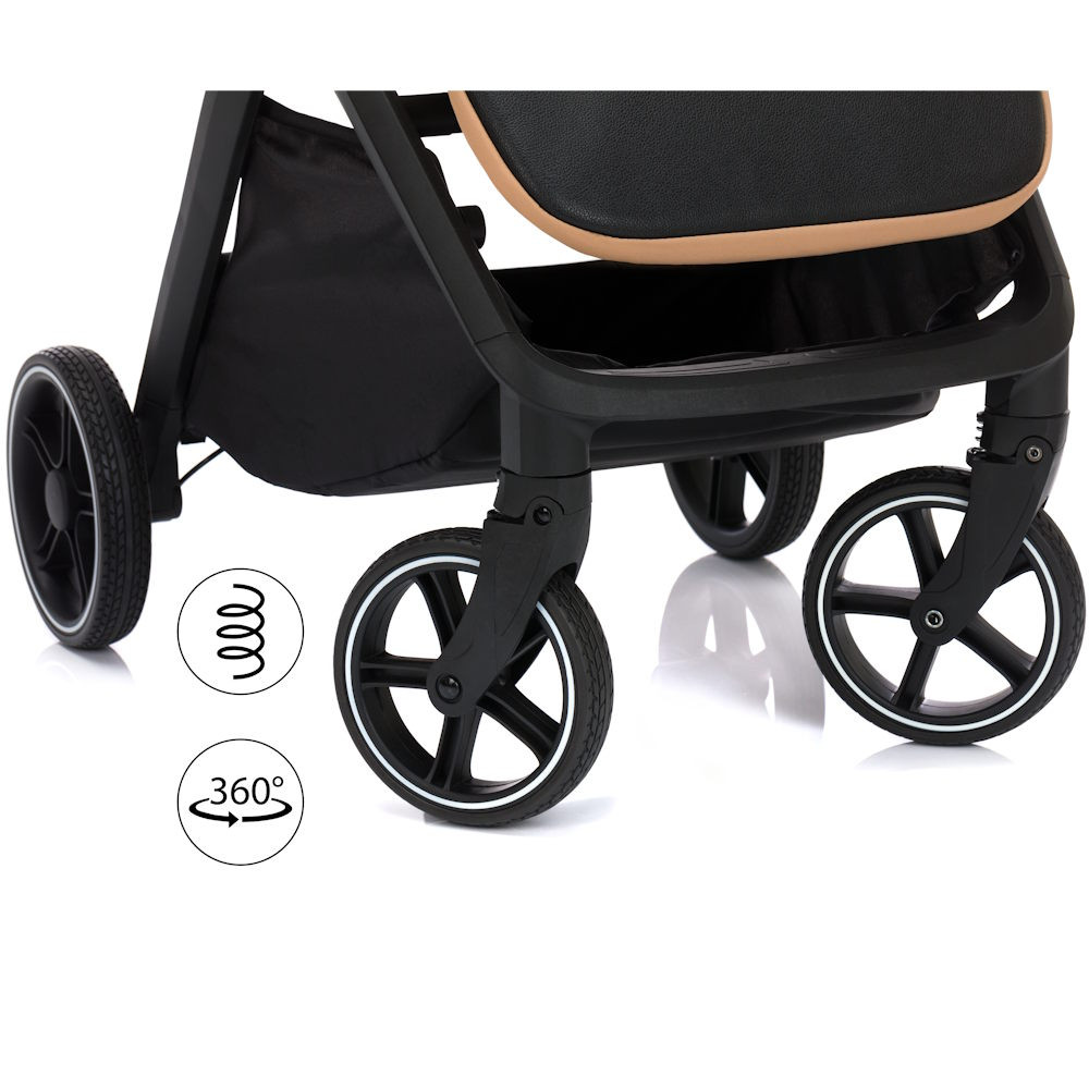 A 16,5 cm átmérõjû elsõ és a 20,3 cm átmérõjû hátsó kerekeknek köszönhetõen bármilyen felületen könnyedén vezethetõ, legyen szó sima városi utcákról vagy egyenetlen utakon. Robusztus felépítése ellenére a babakocsi összecsukható mérete kicsi, és az egykezes összecsukórendszernek köszönhetõen könnyen elrakható.