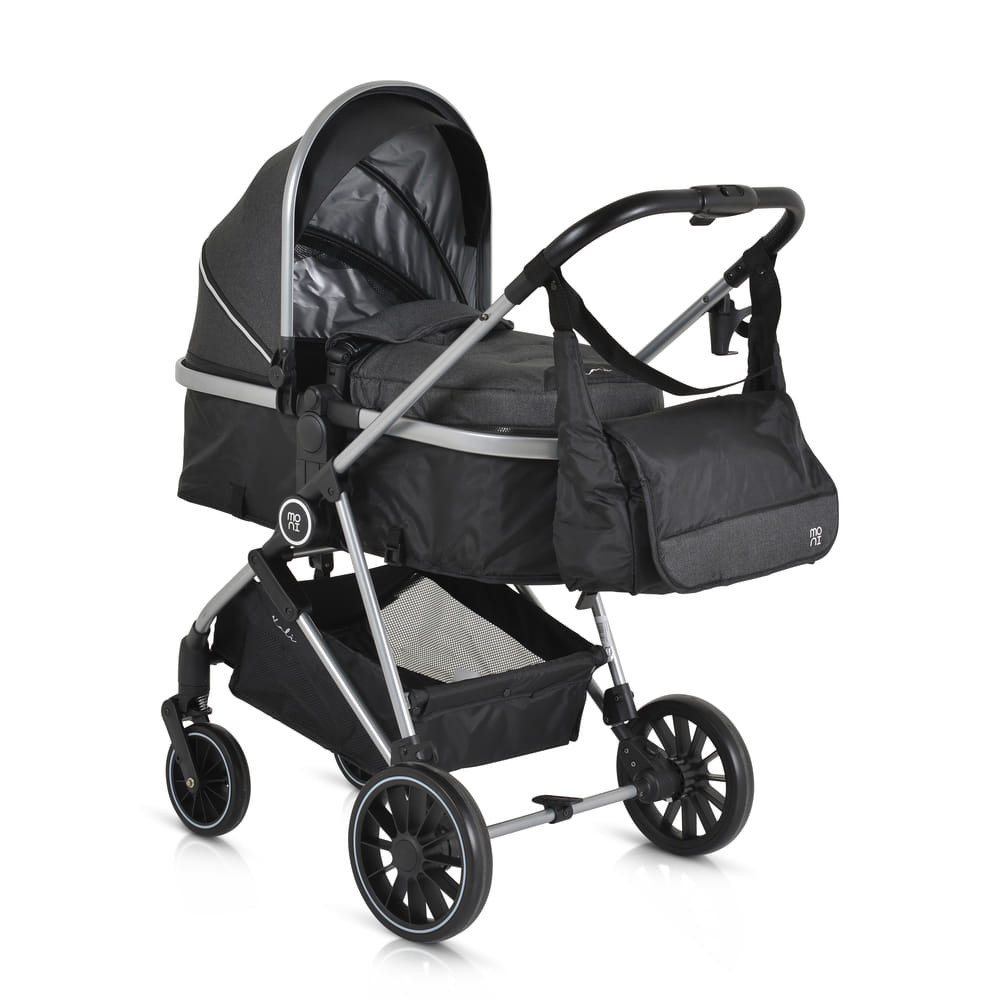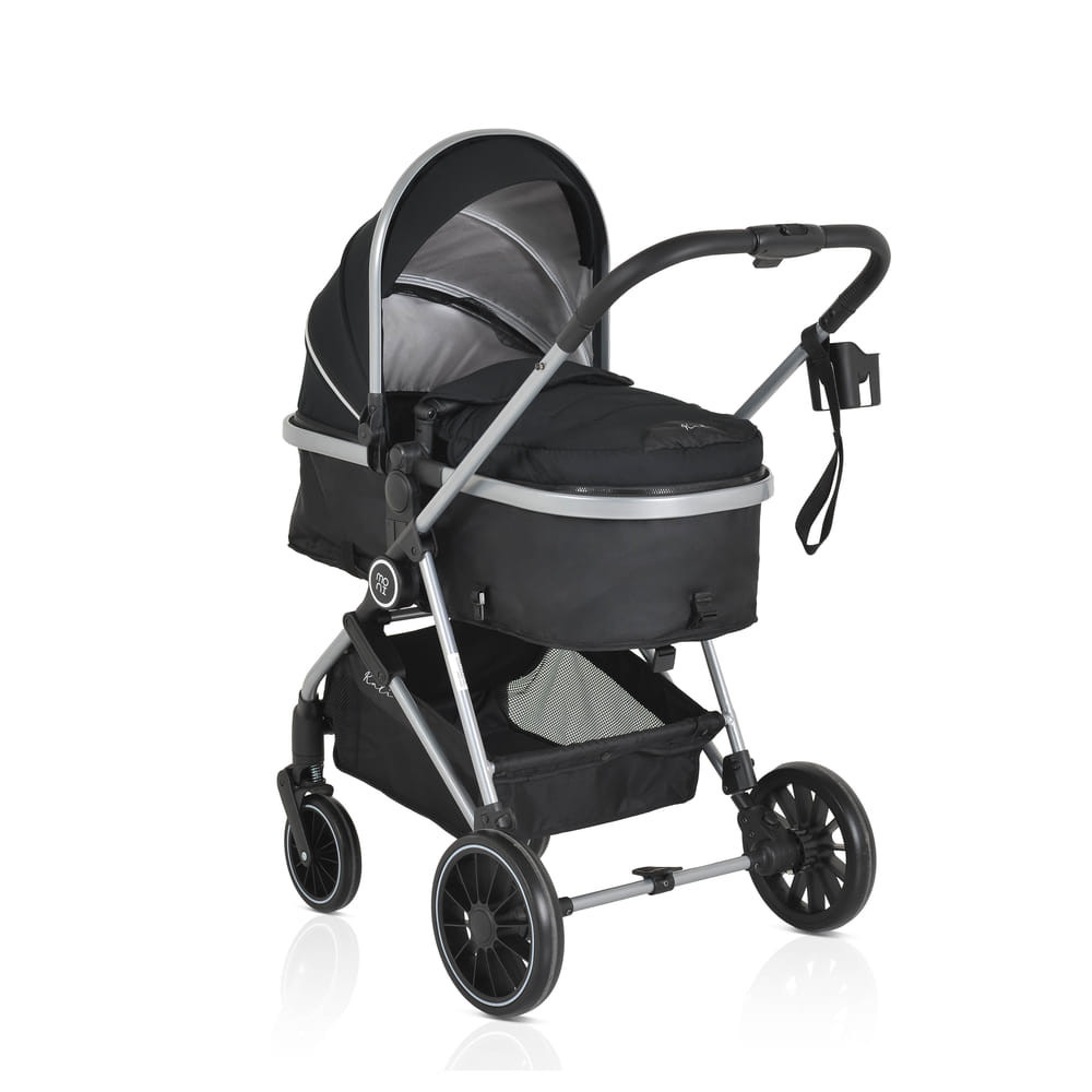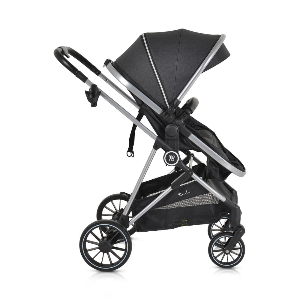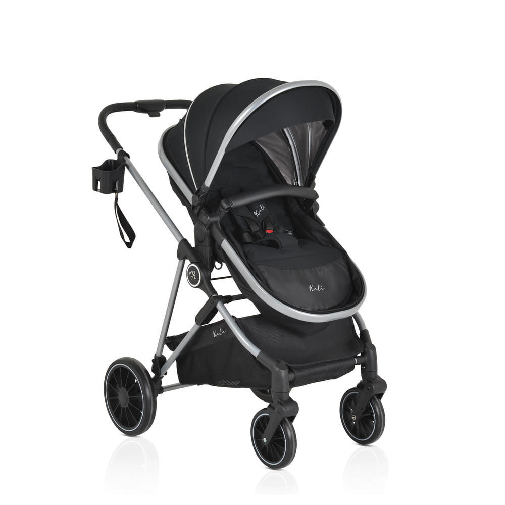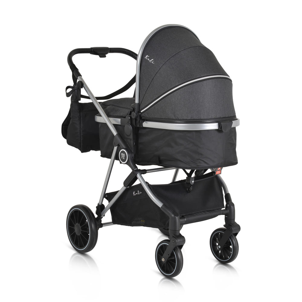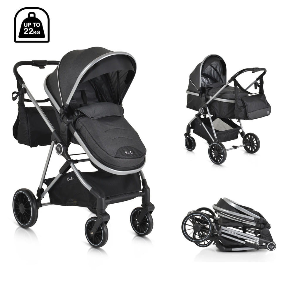 KALI babakocsi 2in1 lapra csukható, megfordítható+táska FEKETE, Praktikus és sokoldalú, a Kali babakocsi az ideális választás, könnyű és manőverezhető. Könnyen átalakítható újszülöttek számára készült mózeskosárból ülőrésszel, széles ülésével és további puha, levehető bélésével kényelmet és kényelmet biztosít babája számára. Alkalmas 0-48 hónapos korig, 22 kg-ig. Könnyű alumínium váz; Könnyen és gyorsan összecsukható üléssel, könyvszerű összecsukható; Egykezes kibontás; Megfordítható ülés; 3 pozícióban állítható ülés; Különböző pozíciókban állítható háttámla heveder segítségével; További puha bélés, könnyen eltávolítható és mosható; 5 pontos biztonsági öv puha protektorokkal; Tágas, kihúzható kupola rész 4 résszel; További speciális szövet, amely blokkolja a napfényt; Hálós rész a kupolán a jobb légáramlás és láthatóság érdekében; Pohár/üvegtartó; Kivehető és összecsukható műbőr lökhárítórúd; Tágas bevásárlókosár 3 kg-ig; Kapcsolt hátsó kerékfék; 360 fokban elforgatható első kerekek; Az első kerekek gombbal leszerelhetők, EVA gumikkal és rugós felfüggesztéssel; Gombbal leszerelhető hátsó kerekek, EVA gumikkal és hátsó felfüggesztéssel; Tartalma: lábzsák, táska, rovarháló, adapterek Multi autósüléshez (nem tartozék), pohártartó; Nettó tömeg - 9,1 kg; A termék az EN1888-1/En1888-2 európai szabványok szerint készült.
