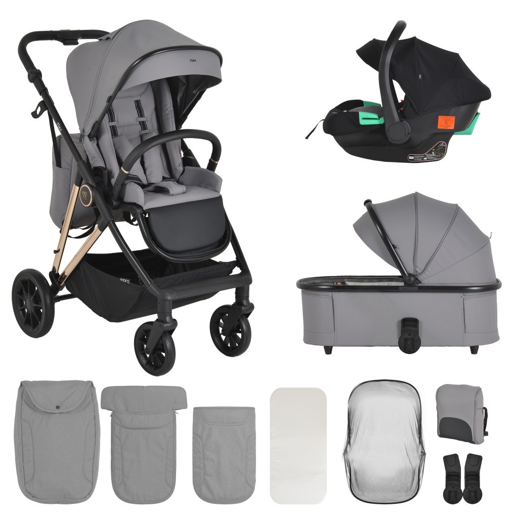 A A Moni Merci 3 az 1-ben babakocsiját úgy tervezték, hogy kényelmet, biztonságot és praktikumot nyújtson a szülőknek a mindennapi életben. A modell születéstől 22 kg-ig alkalmas, és mindent tartalmaz, ami a kényelmes sétákhoz szükséges az első naptól kezdve.