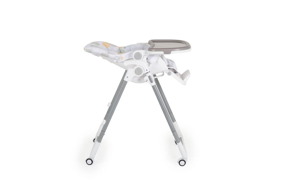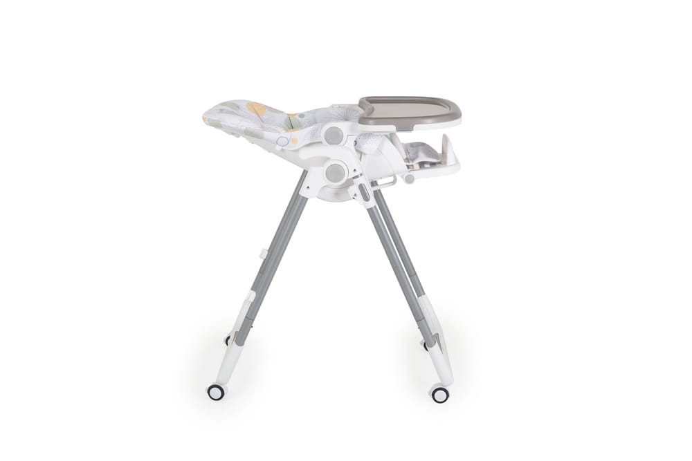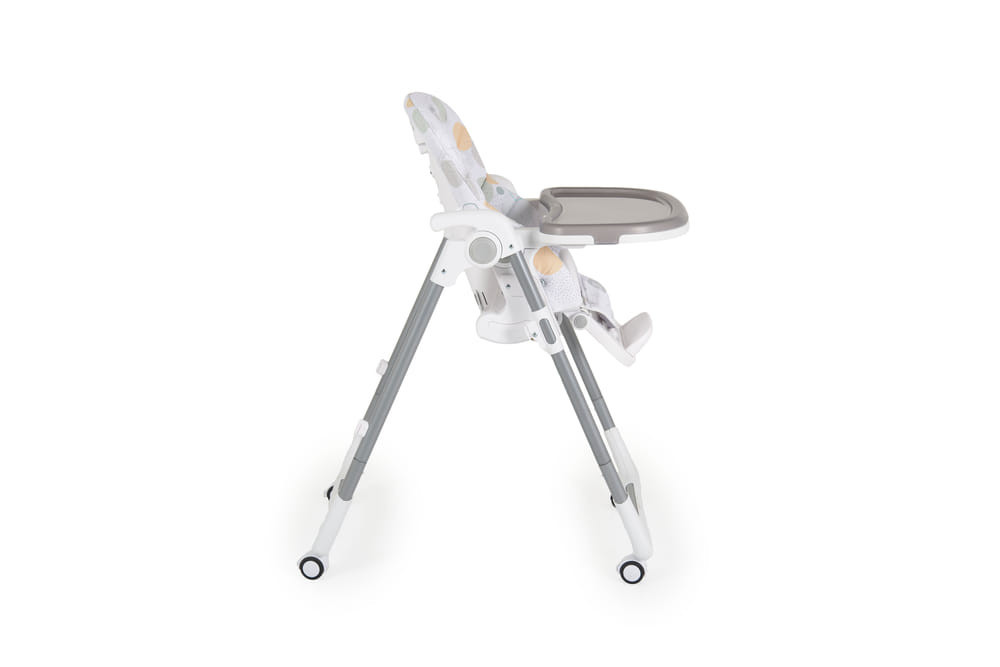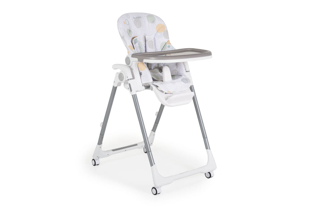 Bueno multifunkcionális etetőszék: 6 magassági szinttel, 5 háttámla pozícióval, 3 lábtámasz dőlésszöggel, 3 kétrétegű adagolótálcával, 5 pontos biztonsági rendszerrel rendelkezik, állítható övekkel.