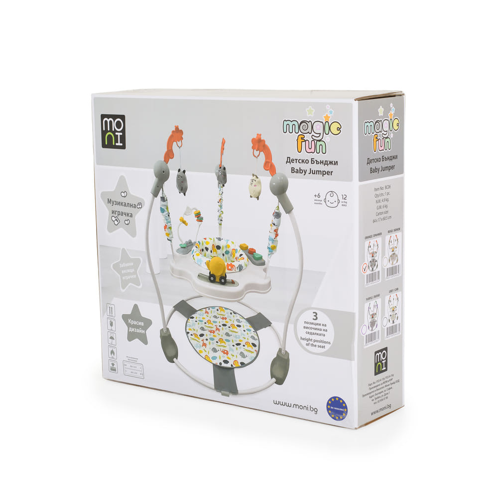 A MAGIC FUN Baba ugráló pasztel játékkal NARANCS egy szórakoztató és interaktív játék minden csemete számára. A vidám narancssárga szín és a játékos pasztel minta garantáltan azonnal felkelti a gyermek érdeklődését. Ez a babahinta nem csak a szórakoztatást szolgálja, de a gyermek fizikai fejlődését is elősegíti, ugrálás közben erősíti a láb- és törzsizmokat. Emellett a beépített játékok tovább növelik a szórakozás élményét és a kézügyességet is fejlesztik. A biztonság érdekében a hinta stabil kialakítású és megfelelően rögzíthető.