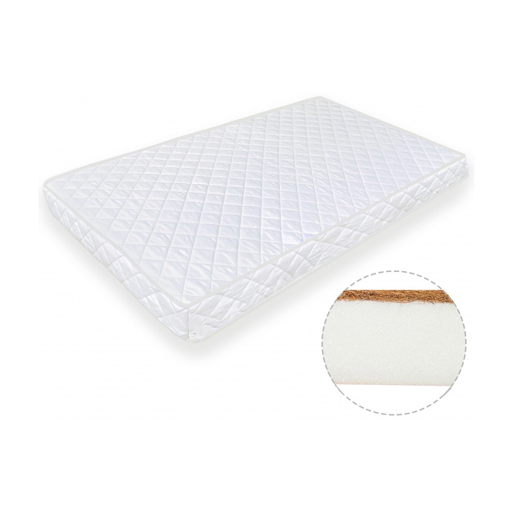 A MyKids Komfort I kókusz - hab matrac két rétegbõl áll: egy kókuszrost rétegbõl, latex keverékébõl (kókuszszõnyeg) és egy poliuretán habrétegbõl (szivacsból) , amely lehet fehér vagy színes. A matrac fehér mikroszálas huzattal van bevonva .