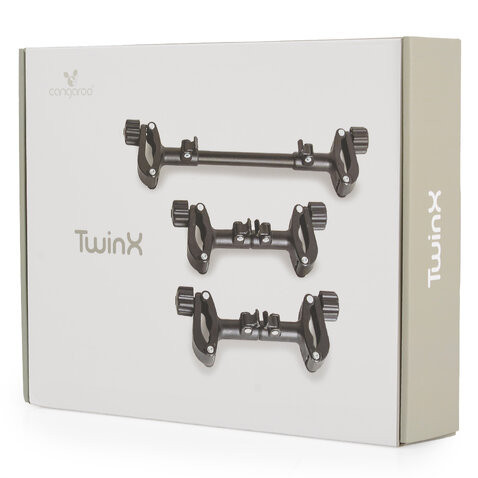 A TwinX, Cangaroo egy praktikus, állítható csatlakozókból álló készlet, amely két babakocsi egyszerű és biztonságos összekapcsolását teszi lehetővé egy kettős rendszerben. Ideális megoldás ikrek vagy kis korkülönbségű gyermekek szülei számára. Főbb jellemzők: • 3 darabos csatlakozó készlet – 2 rövid tengelyes és 1 hosszú tengelyes • Univerzális rögzítési rendszer, kompatibilis a legtöbb babakocsi modellel • Biztos és stabil összekapcsolást biztosít két babakocsi között • Állítható kapcsok, amelyek hossza a babakocsik közötti távolságnak megfelelően beállítható • Könnyű felszerelés és leszerelés – a rögzítőcsavarokat kézzel, szerszámok nélkül lehet meghúzni FONTOS: A termék felszerelésekor szigorúan be kell tartani a használati utasítást. A BIZTONSÁGOS ÉS MEGFELELŐ HASZNÁLATHOZ KÖTELEZŐ, HOGY A HÁROM CSATLAKOZÓT EGYIDEJŰLEG HELYEZZÉK BE. A TwinX, Cangaroo stabilitást és kényelmet biztosít két babakocsi egyidejű használata esetén.