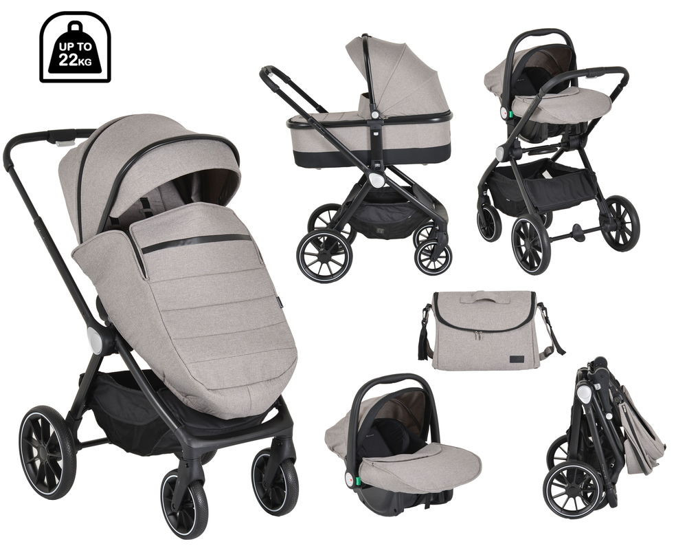 CHRISTIANO babakocsi szett 3in1 lapra csukható, alu váz, 22kgig BÉZS/szürke