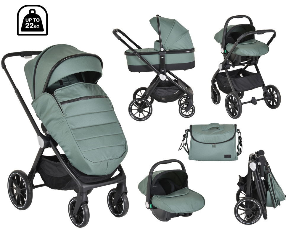 CHRISTIANO babakocsi szett 3in1 lapra csukható, alu váz, 22kgig ZÖLD